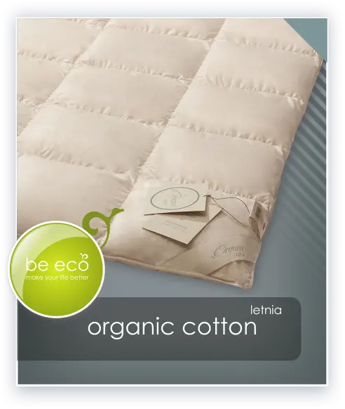 Kołdra ORGANIC COTTON od firmy AMZ to wyrób z wyjątkowej PROEKOLOGICZNEJ kolekcji. Kołdra jest w pełni naturalna, wytworzona z najwyższej jakości materiałów i surowców. Tkanina pokryciowa to 100 % organiczna bawełna inlet o szlachetnym splocie batystowym. Wyjątkowo miękka tkanina o pięknym kremowym kolorze, niebielonej bawełny. Swoją delikatność tkanina zawdzięcza splotowi oraz najwyższej jakości przędzy uprawianej metodami tradycyjnymi. Wypełnienie kołdry to 100% polski puch gęsi klasy ekstra. Surowiec bardzo wysokiej jakości, o dużej wyporności i sprężystości zapewni sen na najwyższym poziomie.