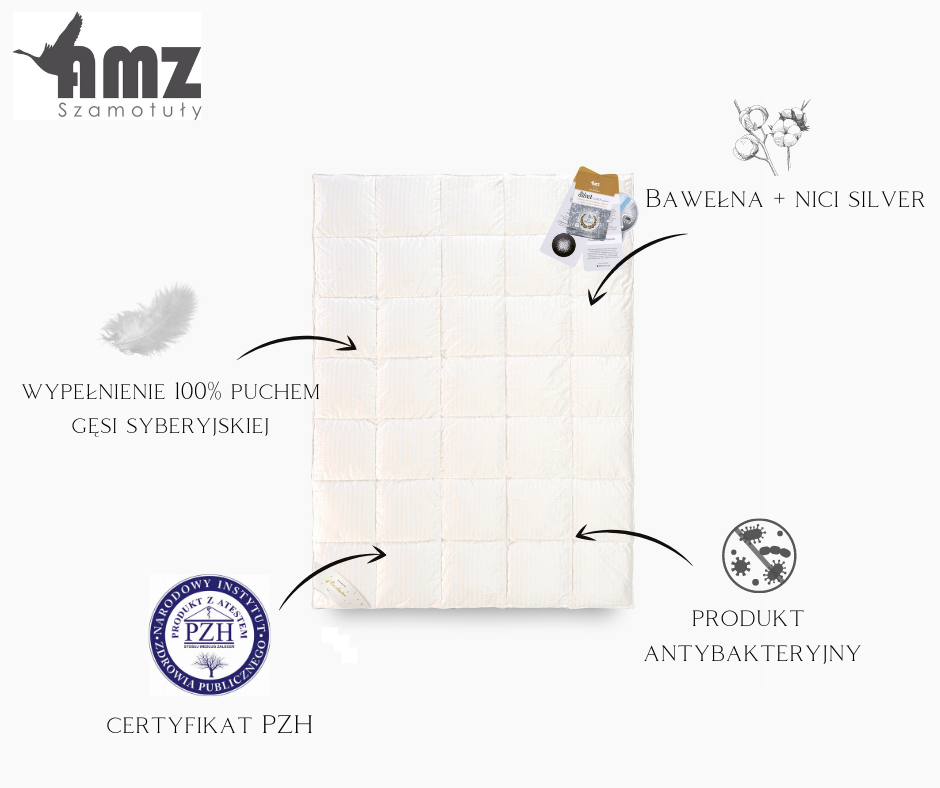 AMZ SILVER PRESTIGE kołdra zimowa puch 100% 135x200