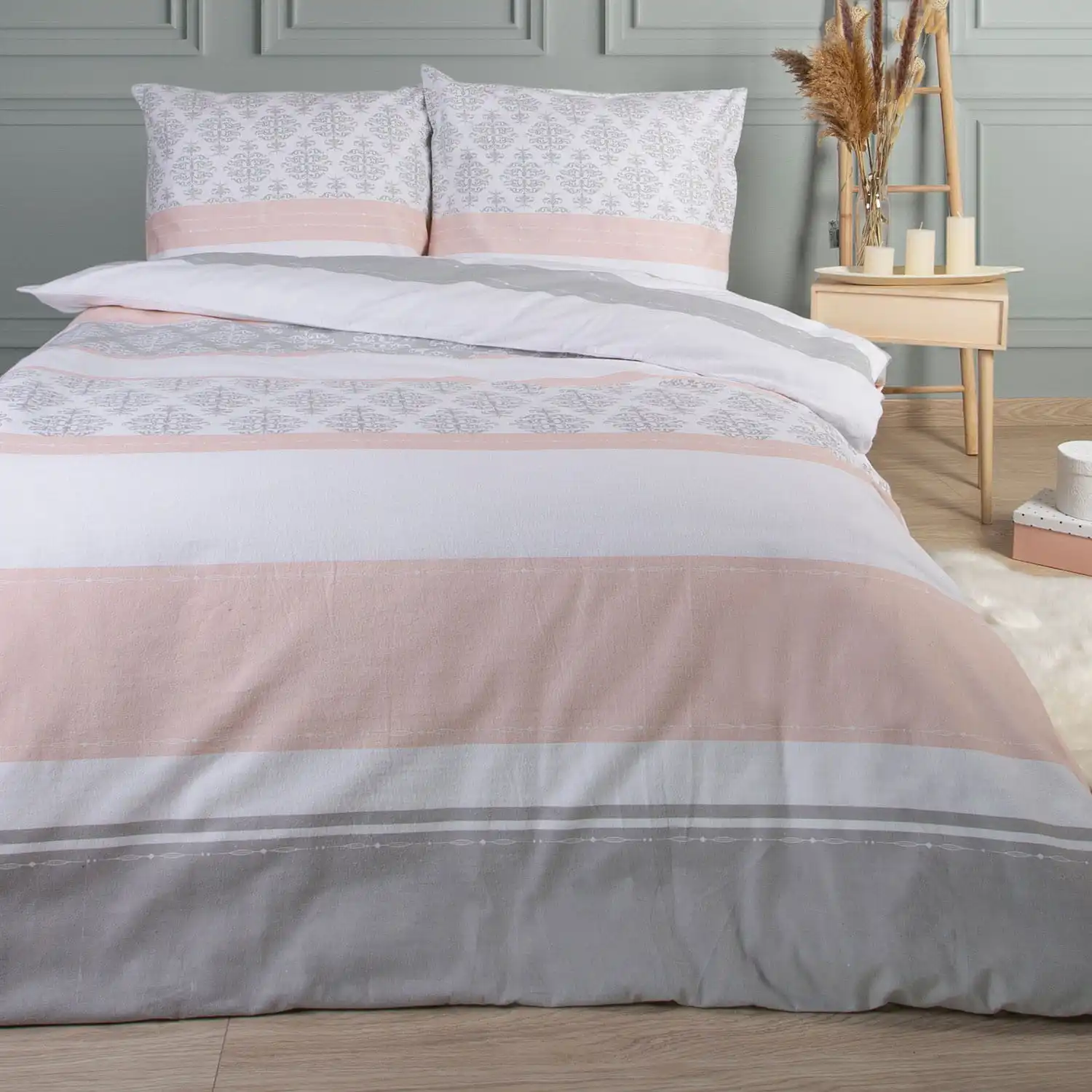 Gramatura 160 g/m2: Optymalna gramatura 160 g/m2 sprawia, że pościel jest niezwykle miękka i przyjemna w dotyku, jednocześnie zapewniając odpowiednią izolację cieplną. Idealnie nadaje się na chłodniejsze dni, zapewniając ciepło i komfort podczas snu.