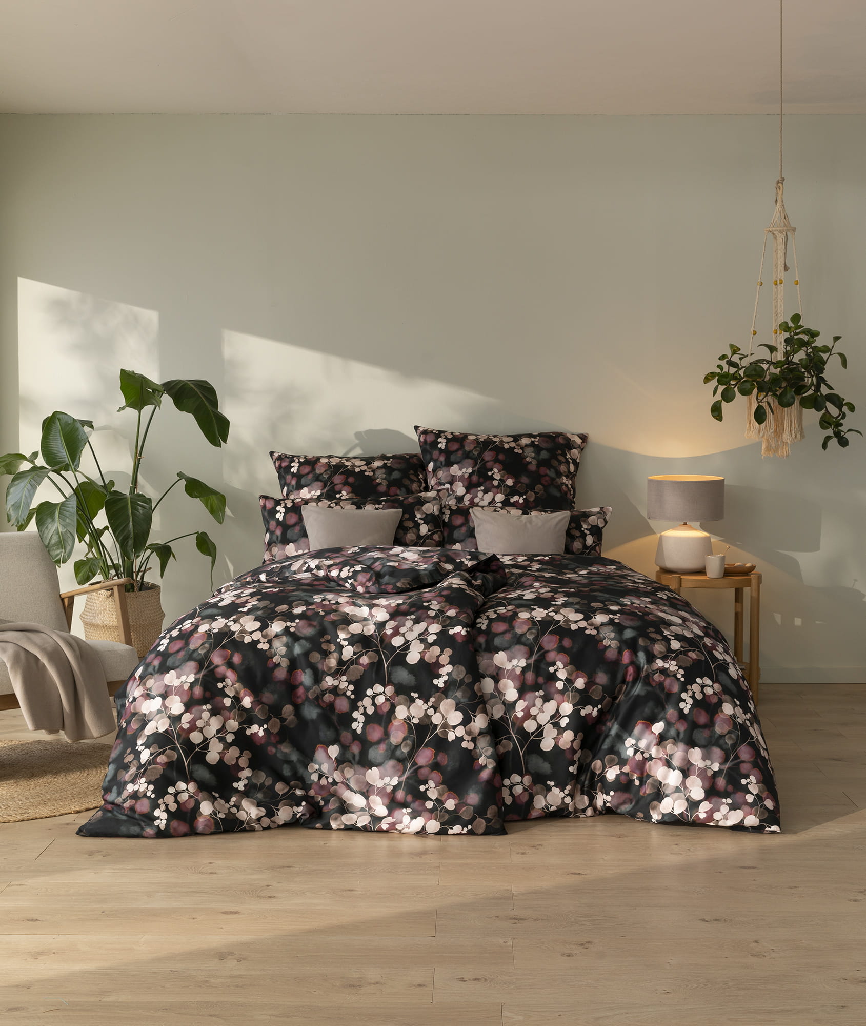 Dodaj swojej sypialni charakteru i wyrafinowanego stylu dzięki pościeli Nevia. Głęboka czerń, przełamana subtelnymi akcentami różu i bieli w formie abstrakcyjnych kwiatów, tworzy mistyczny, a zarazem romantyczny klimat. Wyrazisty kontrast barw wprowadza do wnętrza nowoczesność i głębię, a odpowiednio dobrane dodatki – takie jak ciemne drewno, metaliczne akcenty czy tekstylia w odcieniach mauve, bzu lub bieli – podkreślą wyjątkowy charakter aranżacji.