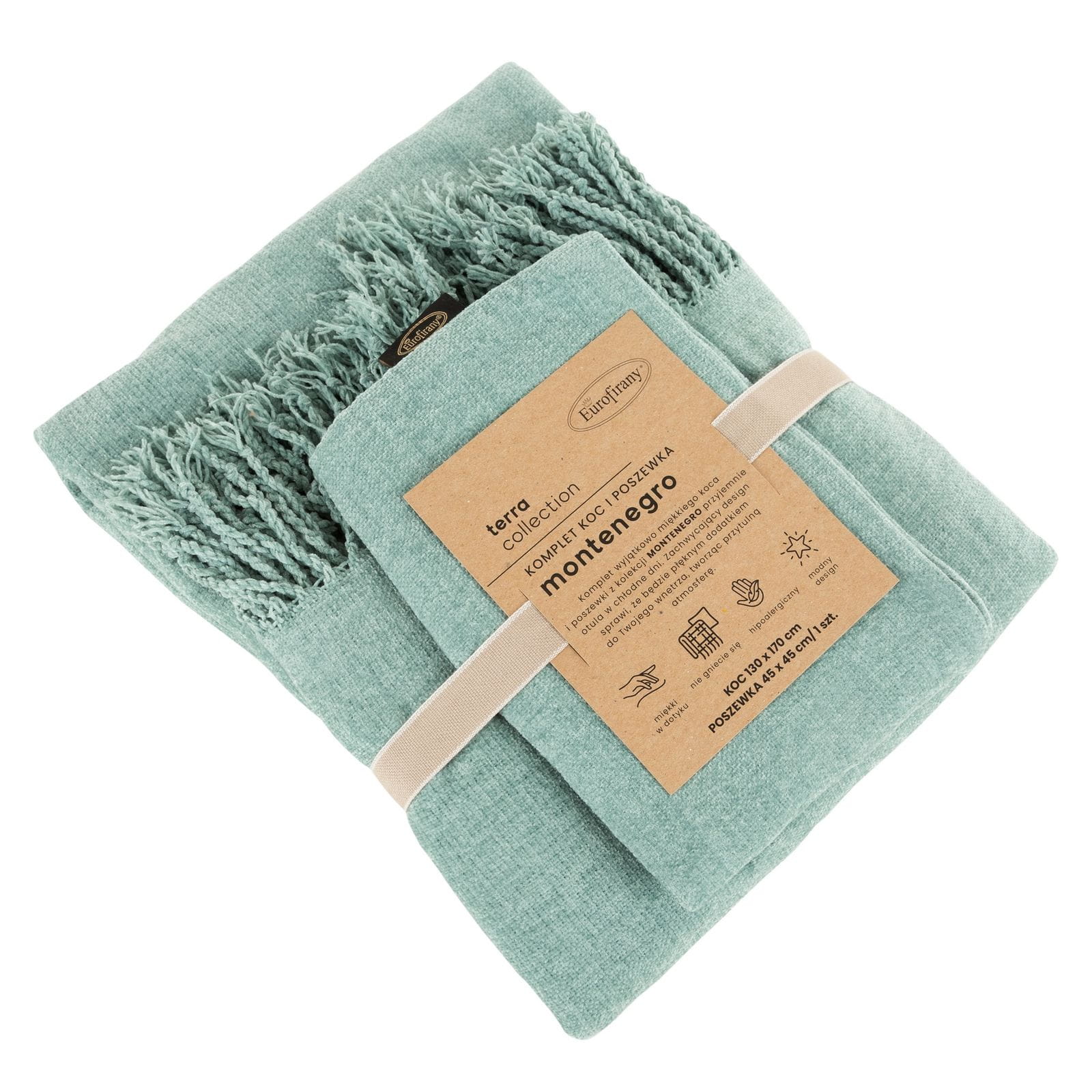Eurofirany Komplet Koc I Poszewka Montenegro Miętowy 130x170 + 45x45