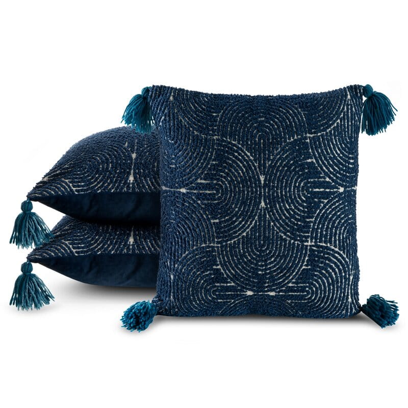 Poszewka dekoracyjna z pomponami szerokość: 45 cm, długość: 45 cm, kolor: granatowy, Gramatura: 340 GSM, Skład: 100% poliester