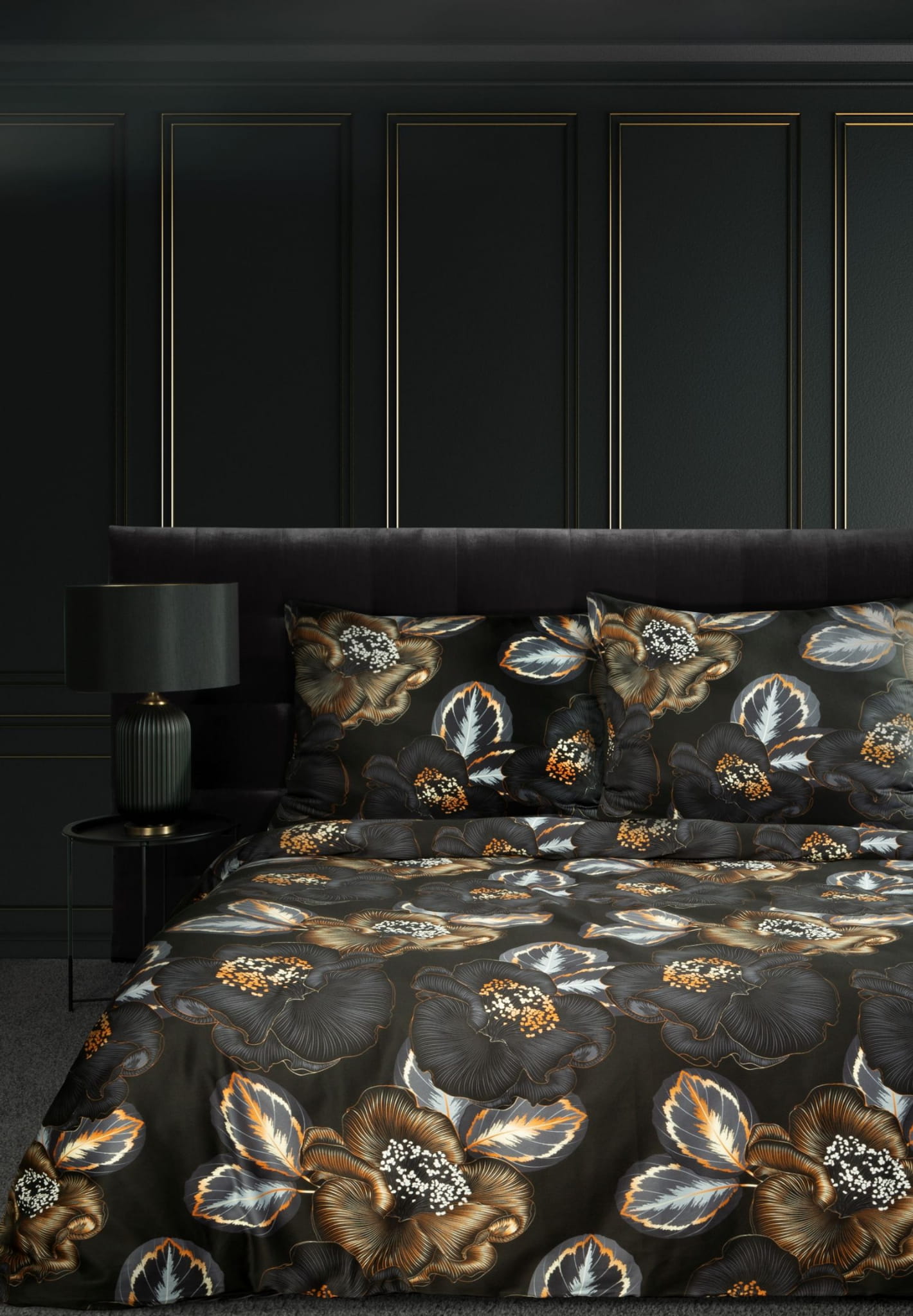 Eurofirany Pościel Satynowa Limited Collection Peonia 2 Czarna 160x200