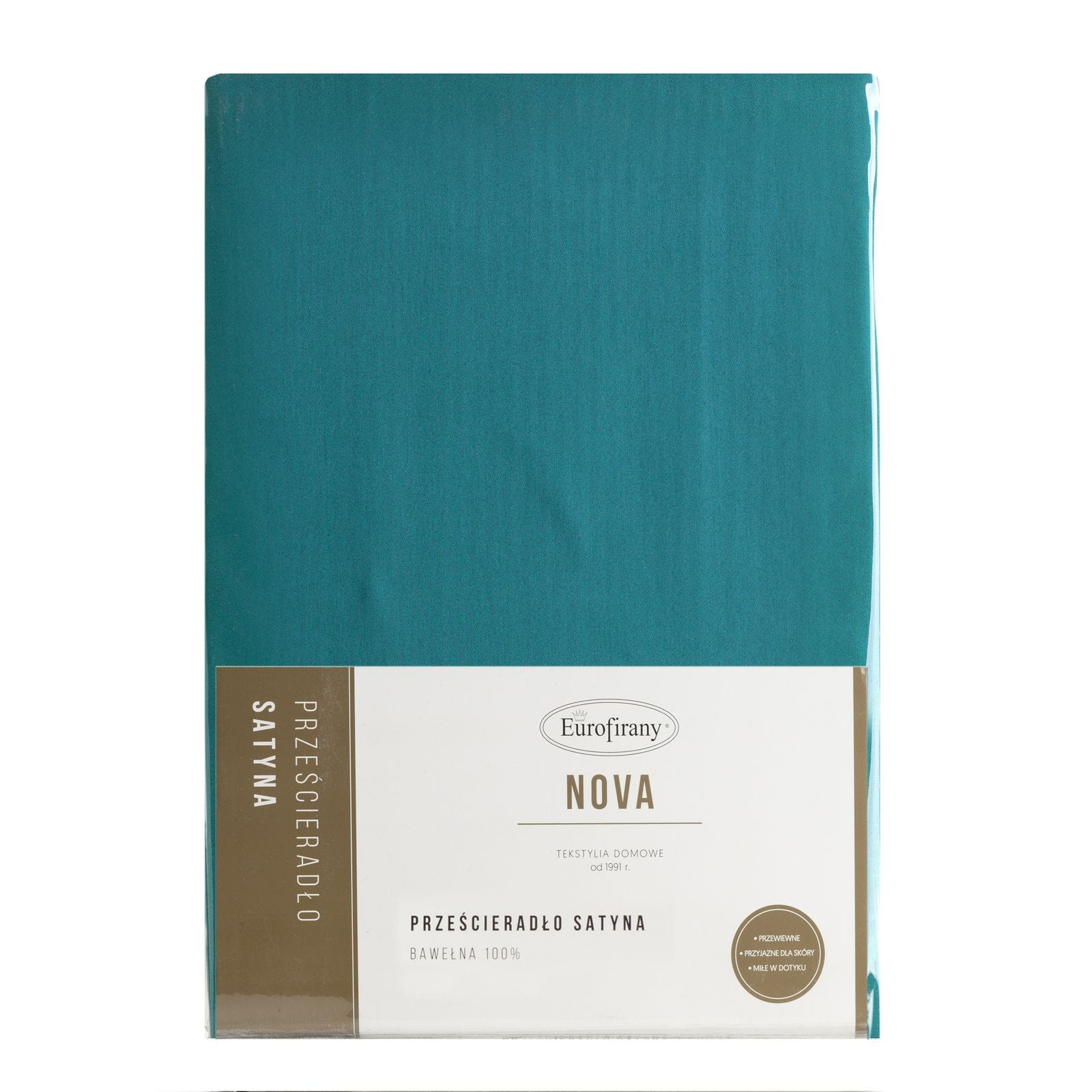 Eurofirany Prześcieradło Satynowe Bez Gumki Nova Turkusowe 180x210