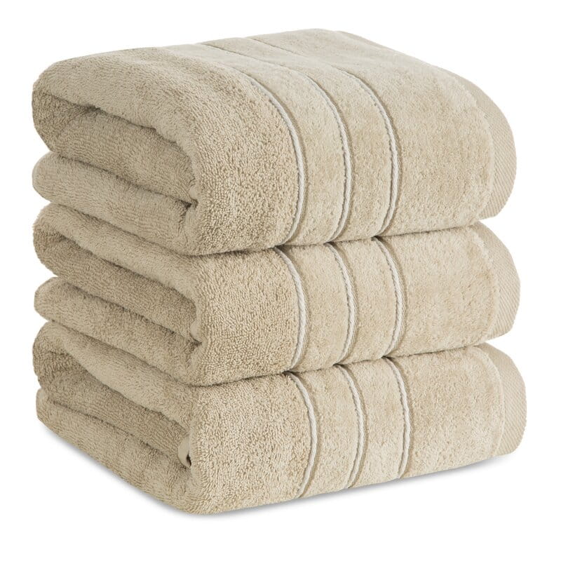Elegancki ręcznik z delikatnej i bardzo chłonnej tkaniny frotte, jednokolorowy. Krawędzie zdobione subtelną bordiurą z welwetu. Łatwy w praniu, trwałe kolory. szerokość: 70 cm, długość: 140 cm, kolor: beżowy, Gramatura: 500 GSM, Skład: 100% bawełna: część ozdobna: 50% poliester, 50% bawełna