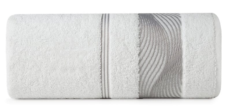 Elegancki ręcznik kąpielowy z miękkiej i chłonnej bawełny frotte zdobiony żakardową bordiurą z kwiatowym wzorem w dopasowanym kolorze. Bardzo miękki i przyjemny szerokość: 70 cm, długość: 140 cm, kolor: biały, Gramatura: 500 GSM, Skład: 100% bawełna: część ozdobna: 70% poliester, 30% bawełna