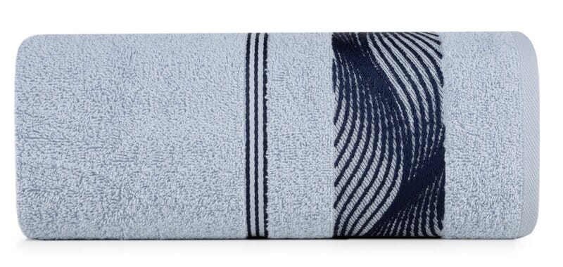 Elegancki ręcznik kąpielowy z miękkiej i chłonnej bawełny frotte zdobiony żakardową bordiurą z kwiatowym wzorem w dopasowanym kolorze. Bardzo miękki i przyjemny szerokość: 70 cm, długość: 140 cm, kolor: niebieski, Gramatura: 500 GSM, Skład: 100% bawełna: część ozdobna: 70% poliester, 30% bawełna