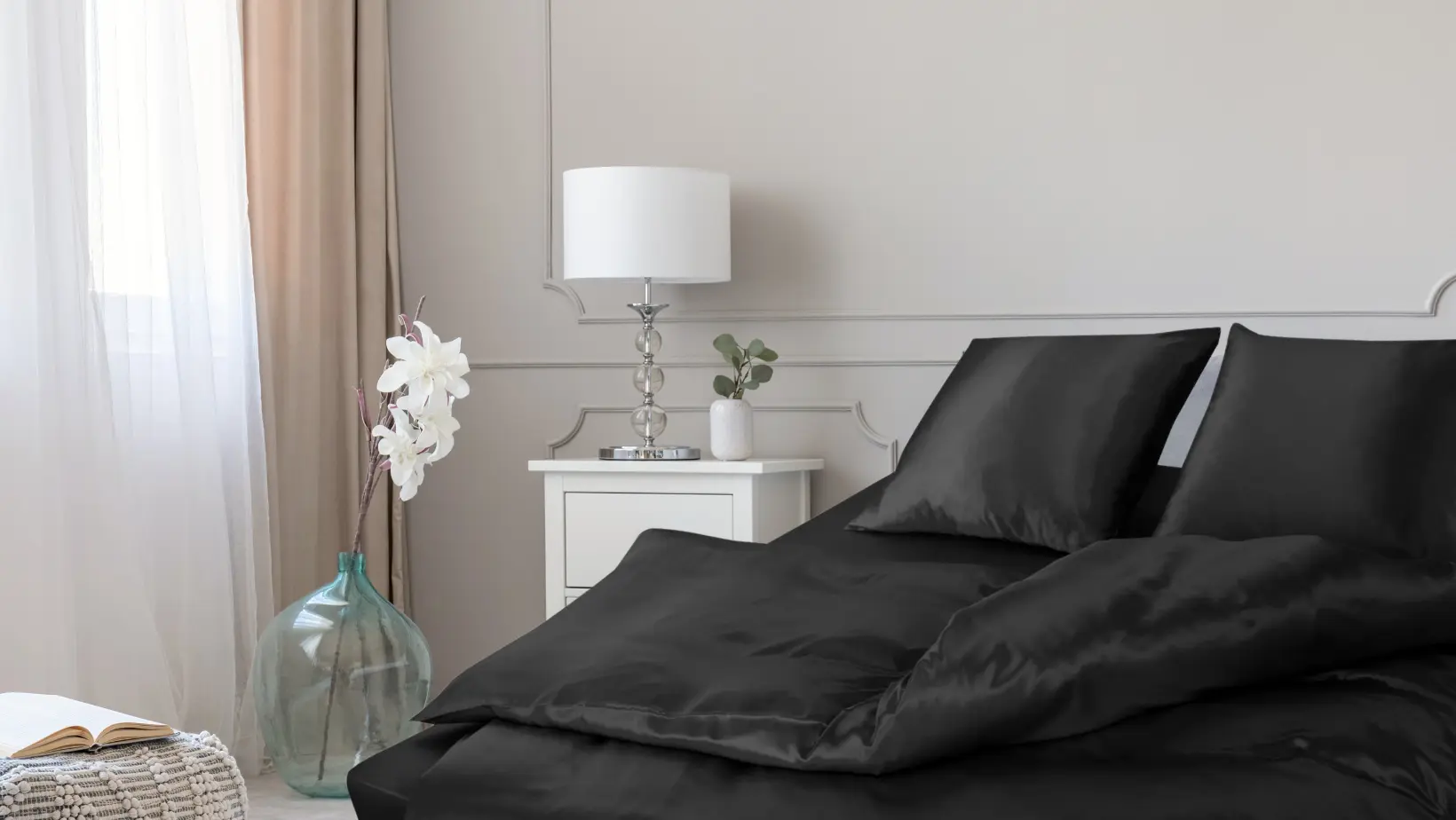 KLARA Pościel Jedwabna 140x200 Czarna