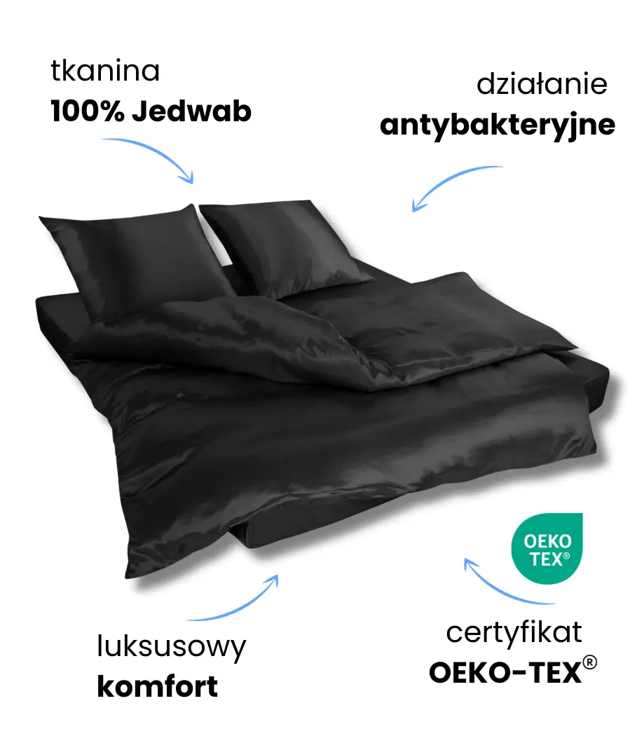 KLARA Pościel Jedwabna 140x200 + 1x70x80 Czarna 2szt. RABAT 10%