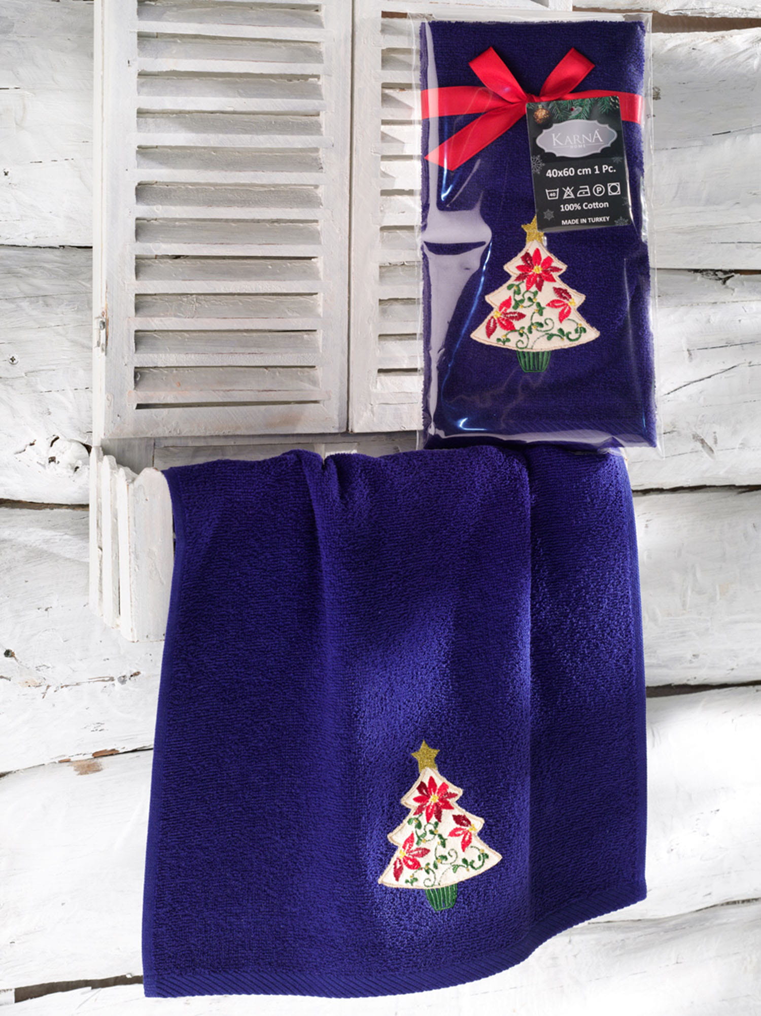 Turkiz Ręcznik bawełniany haft 3409 V3 NOEL 1x40x60 DARK BLUE